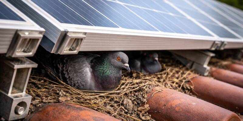 De meest voorkomende reden voor geluid onder zonnepanelen is nestvorming door vogels. De ruimte tussen het dak en de zonnepanelen is beschut, droog en warm. Dat maakt het een ideale plek voor duiven en andere vogels om zich te nestelen.