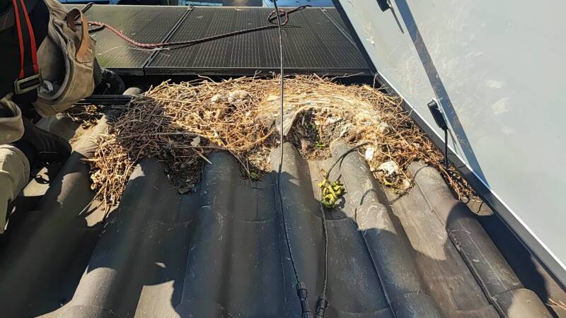 De ruimte onder zonnepanelen is warm en beschut. Dat maakt het een ideale plek voor vogels om te nestelen. Zonder vogelwering hopen nesten, takken en uitwerpselen zich op. Dit kan leiden tot verstoppingen, stankoverlast en zelfs brandgevaar. Ook kan vervuiling de opbrengst van je zonnepanelen verminderen.